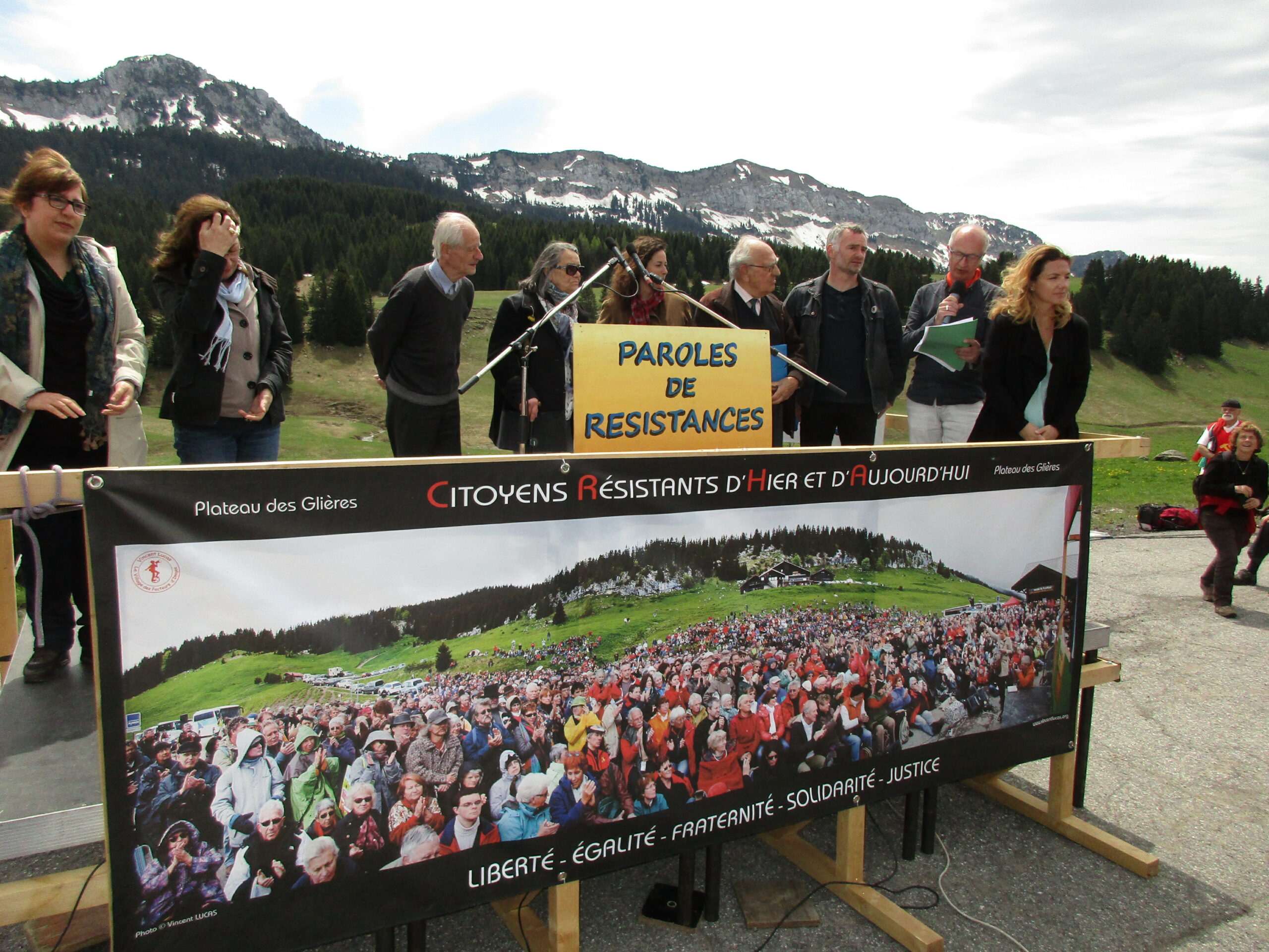 Le dimanche matin, sur le plateau des Glières, celles et ceux qui luttent aujourd’hui partagent la tribune pour témoigner de leurs engagements, accompagnés des paroles (lues depuis quelques années) des Résistant.e.s d’hier.